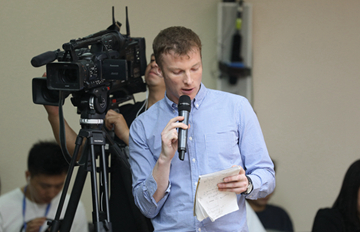 【高峰】:剛才我已經(jīng)說過,近來,美方單方面不斷升級(jí)貿(mào)易摩擦,各種動(dòng)作不斷,致使中美經(jīng)貿(mào)磋商嚴(yán)重受挫。合作是有原則的,談判有底線,中方在重大原則問題上決不讓步,只有在平等相待、相互尊重的基礎(chǔ)上,磋商才有可能繼續(xù)。