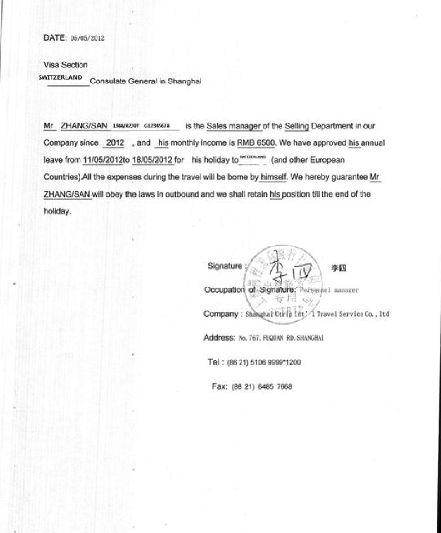 | * 英文在職證明 | 原件 | 本人所在單位的英文在職證明: 1、使用抬頭信紙打印,抬頭包括公司名稱、地址、電話和傳真; 2、人事或公司管理人員簽名,同行人不可以互相簽名。如申請人是法人代表,請人事或其他公司管理人員簽名; 3、蓋公司(公章)或(人力資源章)(二選一)。 | 查看樣例 |